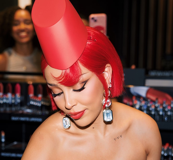 Doja Cat a donné un nouveau sens à «I ONLY WEAR M·A·C» en se présentant au M·A·C Match Day déguisée en rouge à lèvres Lady Danger grandeur nature pour rencontrer et saluer les fans au Glendale Galleria en Californie. Obtenez son look percutant inspiré de sa teinte rouge sirène emblématique.